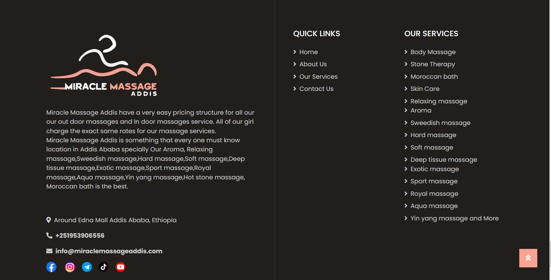 BarokTech delivered a tailored digital platform that enhances client engagement and supports Miracle Massage Addis’s mission to promote health, relaxation, and overall well-being.