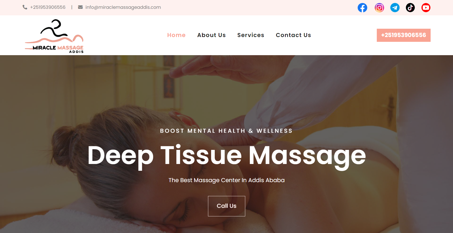 BarokTech designed and developed a calming and professional website for Miracle Massage Addis, a premier massage therapy center offering a range of therapeutic and relaxation services. The website is crafted to reflect the serene and healing environment of the clinic, providing visitors with easy access to service descriptions, pricing, and therapist profiles.